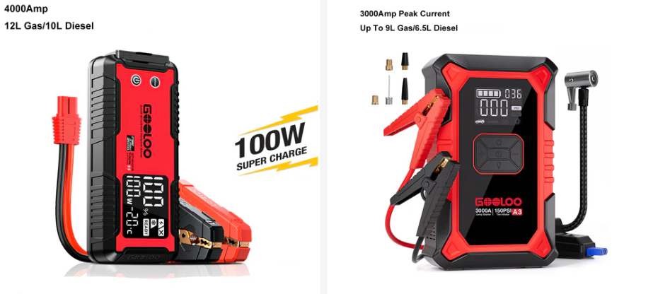 - GOOLOO GP4000 Jump Starter – High peak output for cars, SUVs, and trucks.