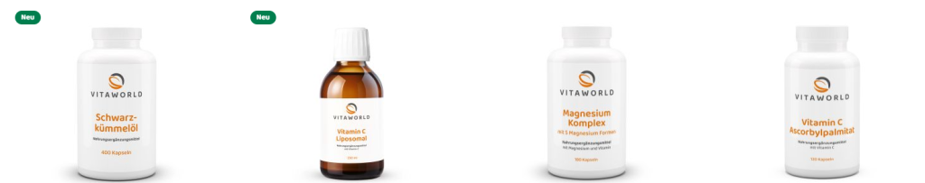 Auf der Website von Vita World24 finden Kunden eine Vielzahl von Produkten, darunter: