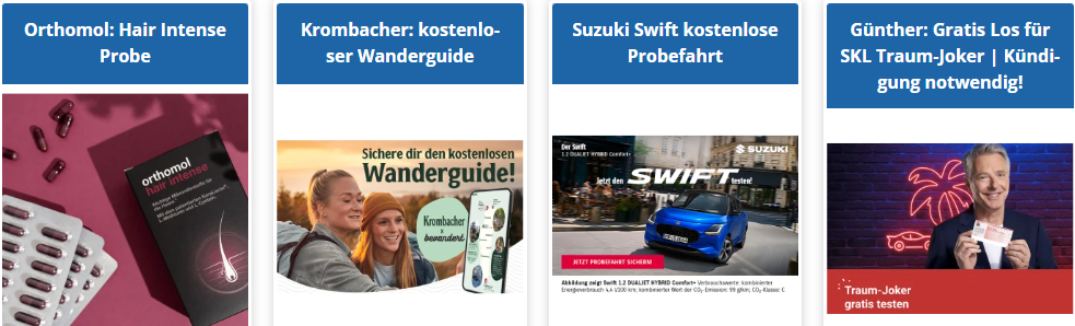 • Produktproben & Gratisaktionen, also Angebote, bei denen bestimmte Produkte kostenlos oder stark vergünstigt getestet werden können.