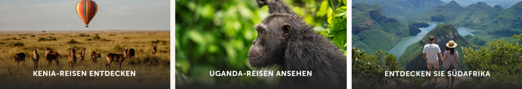 Auf Afrikasafariurlaub.de finden Sie eine breite Palette von Safari-Touren, die verschiedene Länder und Nationalparks abdecken. Sie können entweder eine geführte Safari buchen oder eine Selbstfahrer-Safari wählen, bei der Sie die Freiheit haben, Ihre Reise selbst zu gestalten. Die Angebote reichen von kürzeren, intensiven Safaris bis hin zu längeren Touren, bei denen Sie mehrere Länder und Regionen Afrikas erkunden können. - Informationen zu Reisezielen