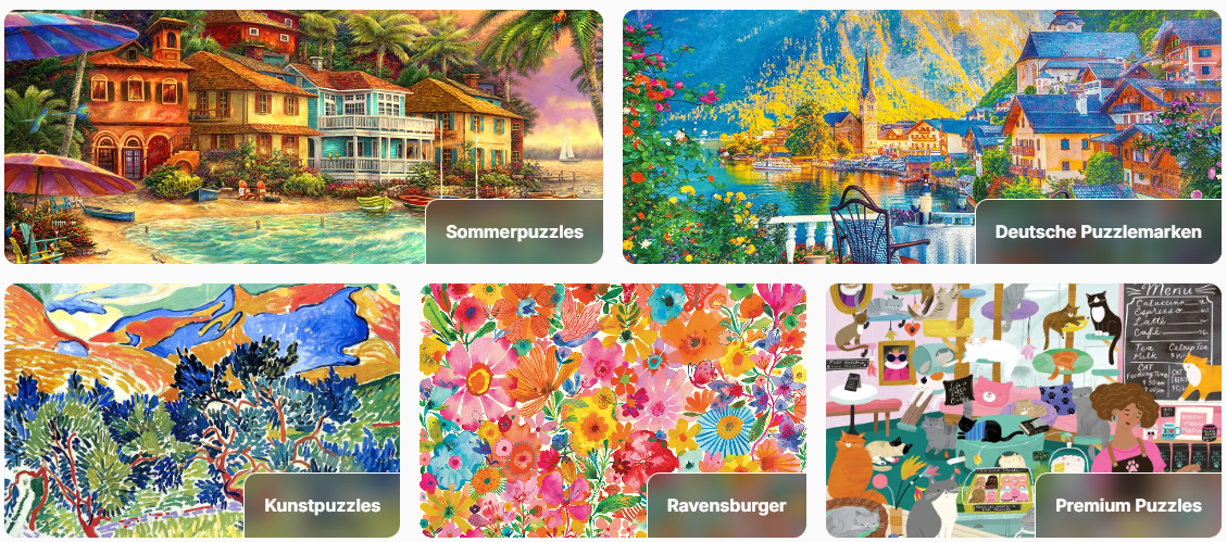 - Exklusive und hochwertige Puzzle-Kollektionen: Während viele andere Online-Shops ebenfalls Puzzles anbieten, hat Puzzle.de eine besonders sorgfältige Auswahl an hochwertigen Puzzles im Angebot. Besonders Sammler und Hobby-Puzzler kommen hier auf ihre Kosten, da viele der Puzzles exklusiv und nicht in anderen Geschäften erhältlich sind.