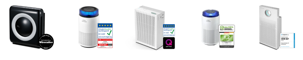 • Luftreiniger: Verschiedene Modelle für kleine, mittlere und große Räume – alle ausgestattet mit mehrstufigen Filtersystemen und intelligenter Steuerung.