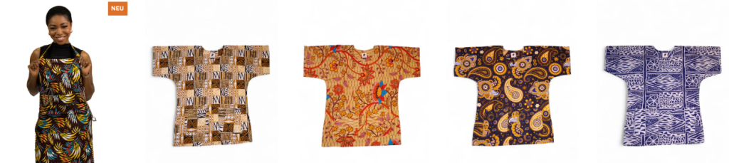 - Kleidung: Shirts, Kleider, Tops im afrikanischen Print, Unisex‑Mode mit Charakter.