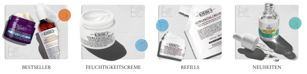 Auf der Website von Kiehl’s können Nutzer Produkte nach Kategorien wie Gesichtspflege, Körperpflege, Haarpflege und Sonnenschutz durchsuchen. Zusätzlich gibt es Geschenksets, saisonale Editionen und spezielle Serien für unterschiedliche Hautbedürfnisse. Die Website bietet detaillierte Informationen zu Inhaltsstoffen, Anwendung und Hauttyp, sodass Kunden das passende Produkt gezielt auswählen können.