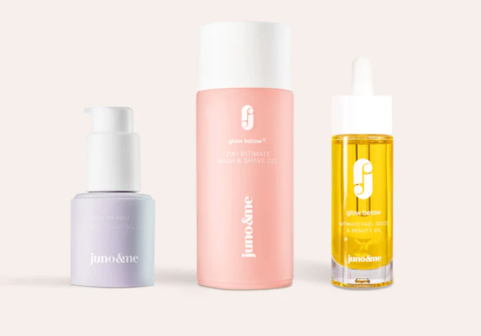 Die Website von juno&me bietet ein umfassendes Pflegeprogramm, das speziell auf Körper und Intimbereich ausgerichtet ist. Dazu gehören: