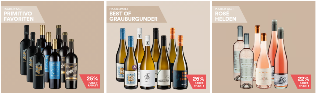 - Weinpakete und thematische Sets, die sich ideal für Verkostungen oder Geschenke eignen